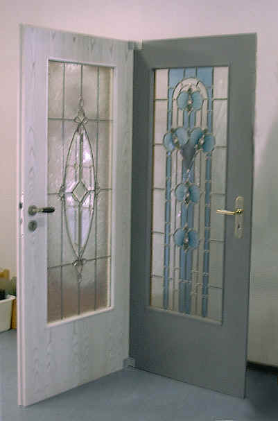Eine elegante Innentür mit zierlichen Antikglaseinlagen